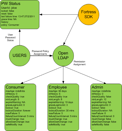 Apache Fortress adheres to IETF Password Policy Draft. While this draft was never formally adopted it has traction within the various directory implementations and remains the de facto standard today.