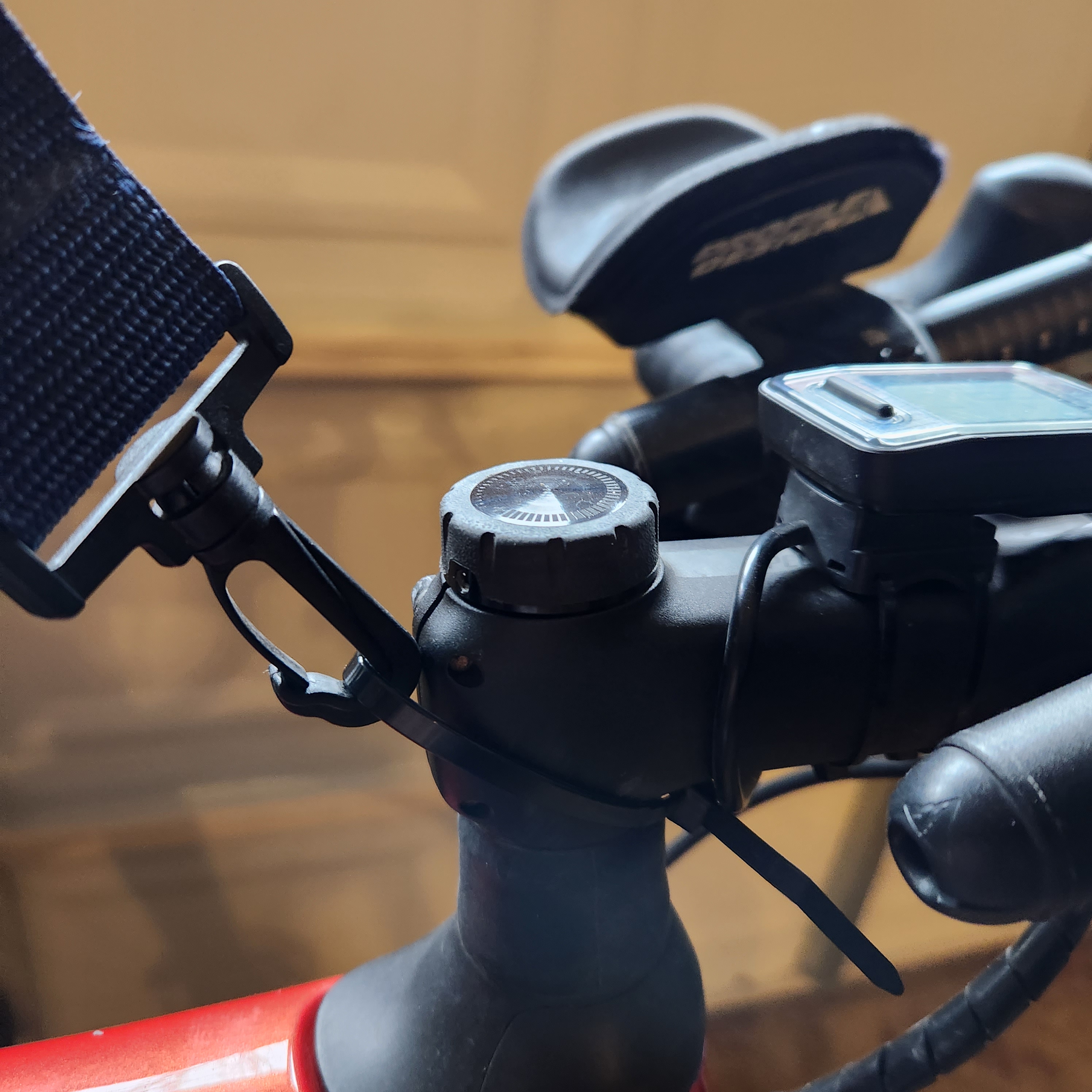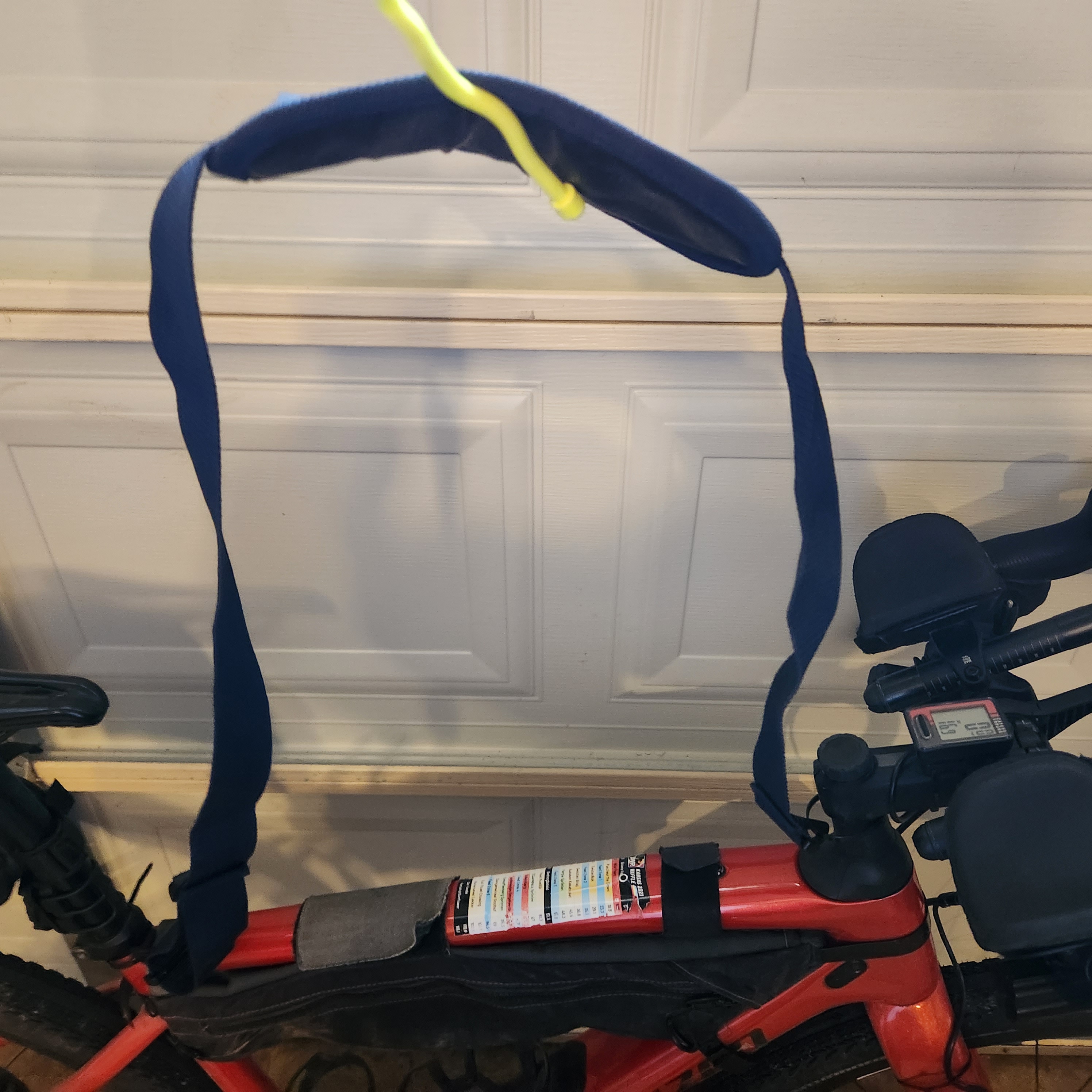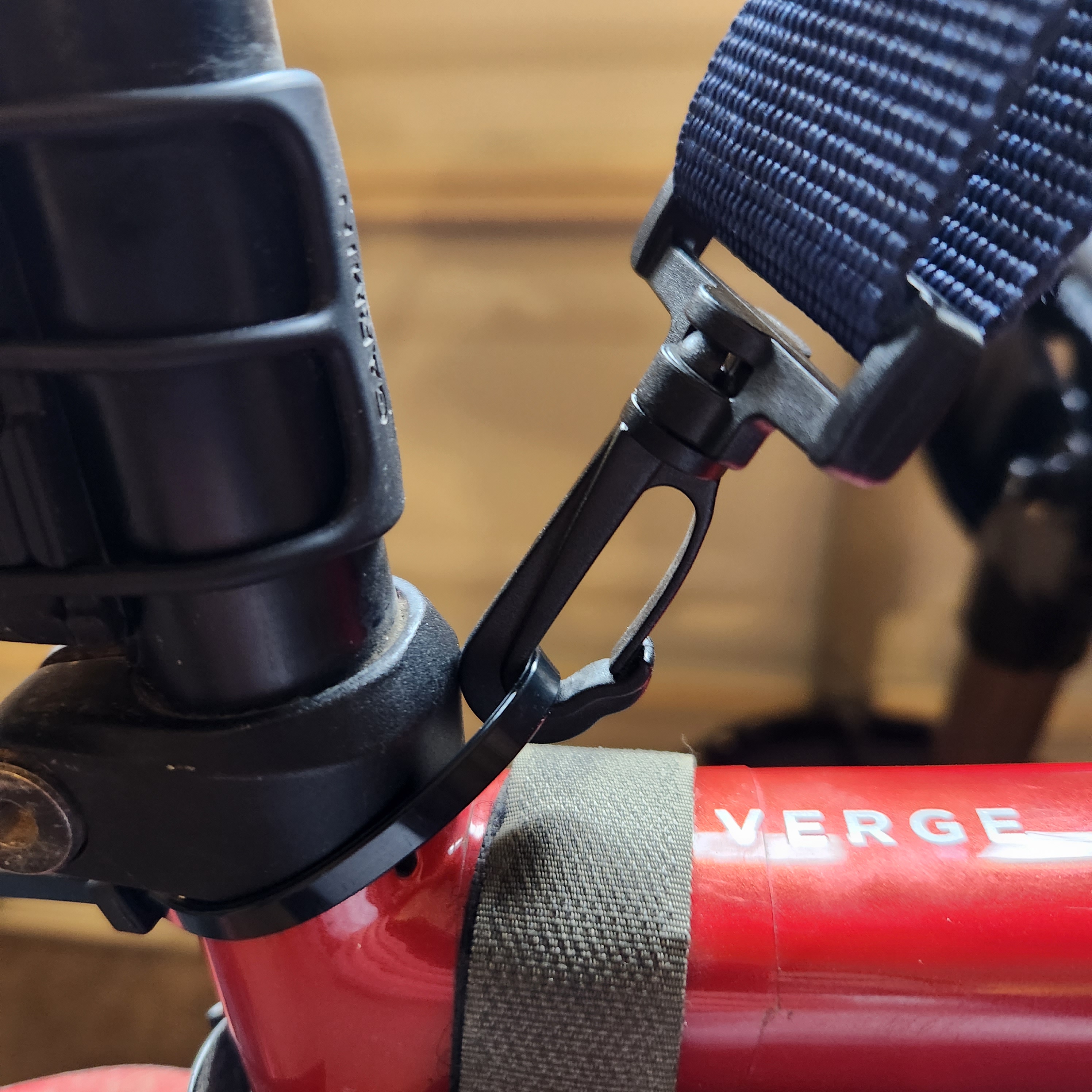 Robb Finegan provided this tip after placing 5th at the ’21 The Long Voyage. Riders carried 3 miles after rains washed out the B-Roads on the course. An old mountain biker trick: A duffel bag strap attached to a couple zip ties can be easily stowed, makes carrying a whole lot easier.
