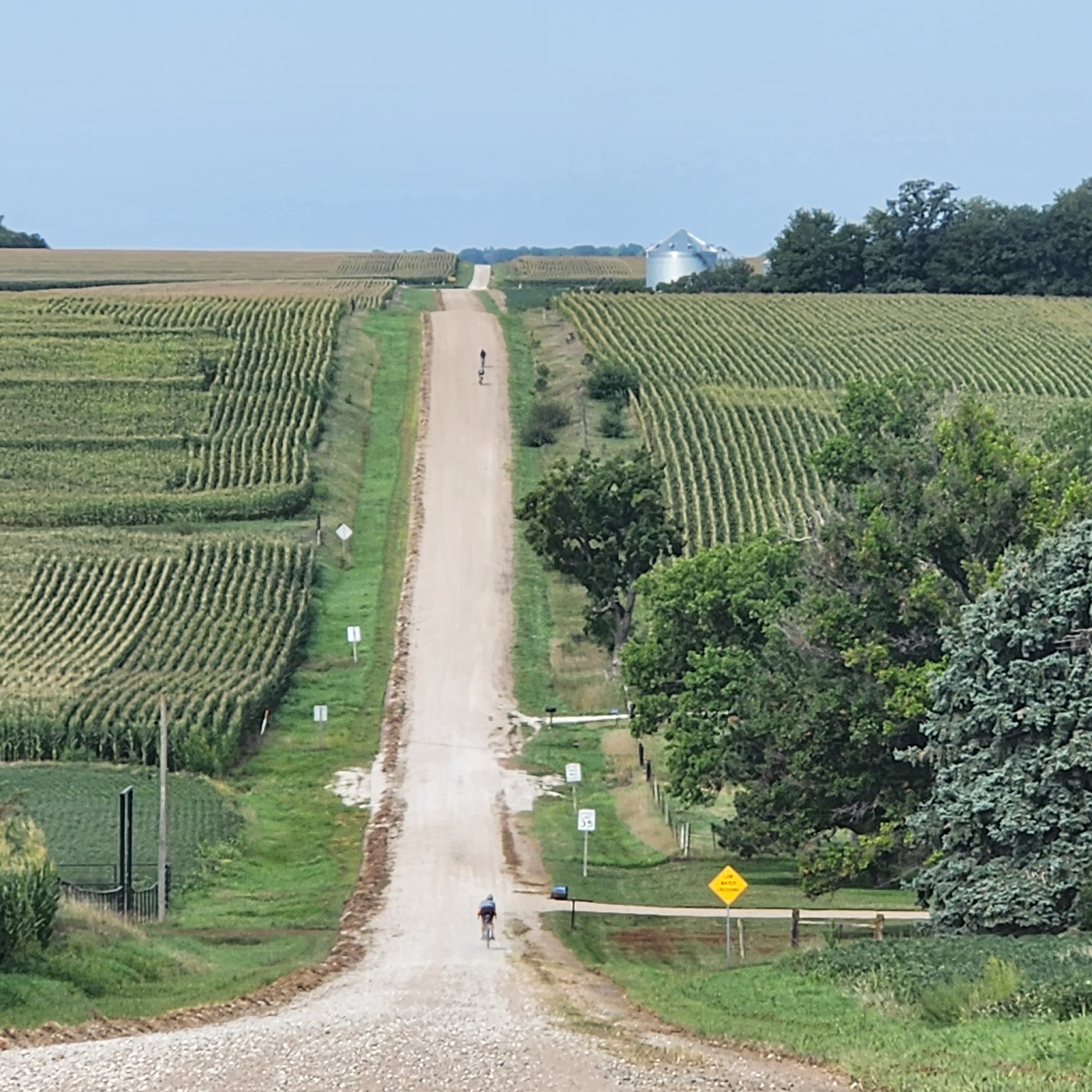 No matter. There was work to be done. Iowa can be a lonely place. It greeted us with loose and chunky gravel. Makes the going tough as you slip and slide along. Have to maintain momentum which requires more power. “This gravel is a friend”, was the mantra. Trust it don’t fight it. Let it go where it wants.
