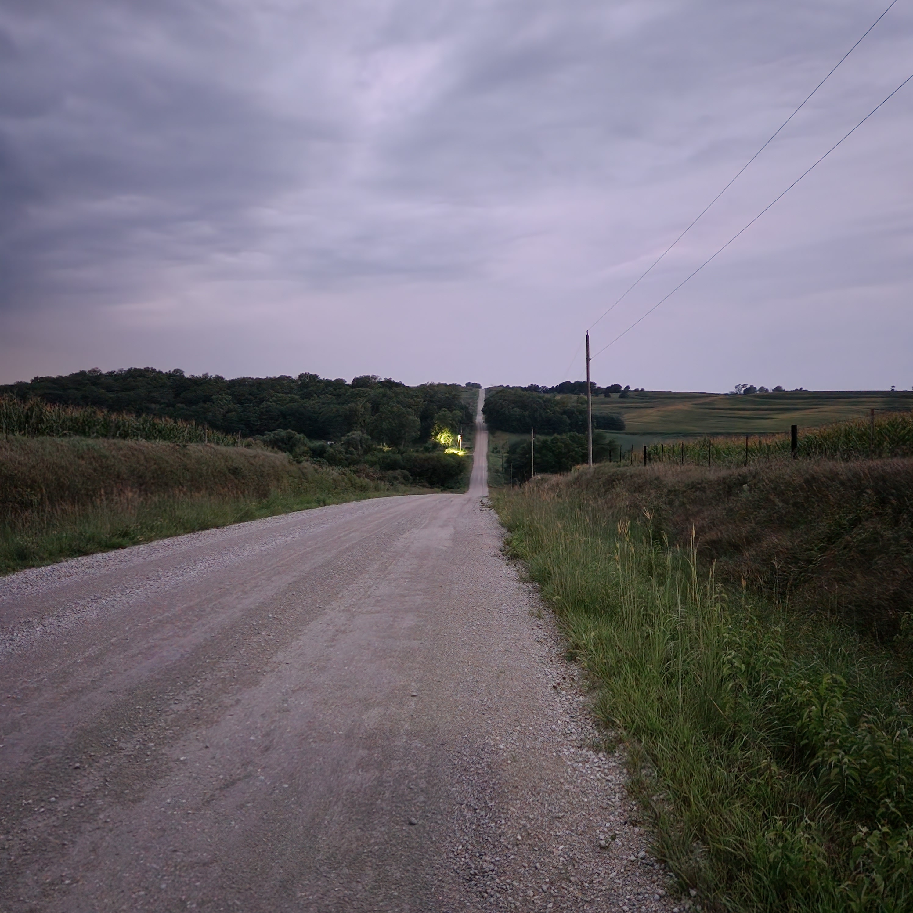 There were others at Treynor. It was perhaps a little too cozy. Didn’t want to leave. Some discussions over the storm and its bearing. I put on a rain jacket. Stowed spare batteries in ziplocks. A once over on the bike. Wet lubed the drivetrain. “Head north as fast as you can, might just miss it”, Jamie’s calm words of advice rang in my ears as I departed.